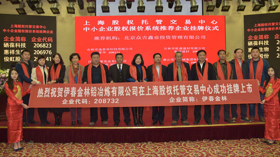 2015年12月11日经北京众吉鑫业投资管理有限公司推荐,伊春金林铅冶炼有限公司(企业简称:伊春金林 企业代码:208732)成功挂牌上海股交中心中小企业股权报价系统。
